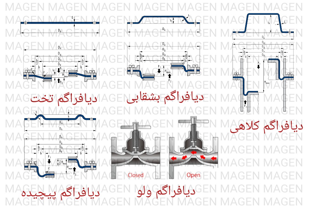 ماگن پلیمر تولید کننده انواع دیافراگم لاستیکی میباشد که با توجه به محیط کاری و فشار وارده بر انها و انجام تستهای مورد نظر در ازمایشگاه این مجموعه ، در ضخامتهای مختلف و بصورت غیر مسلح و مسلح ( تقویت شده با الیاف ) ونیز انواع منجید دار برای عملکردهای پرفشار و در متریالهای مورد تایید در شرایط ازمایشگاهی جهت محیطهای ، حساس...دمای بالا...دمای پایین....بهداشتی....بنزین و مایعات قابل اشتعال...اسیدی...اب...بخار...گاز....تولید میگردد.